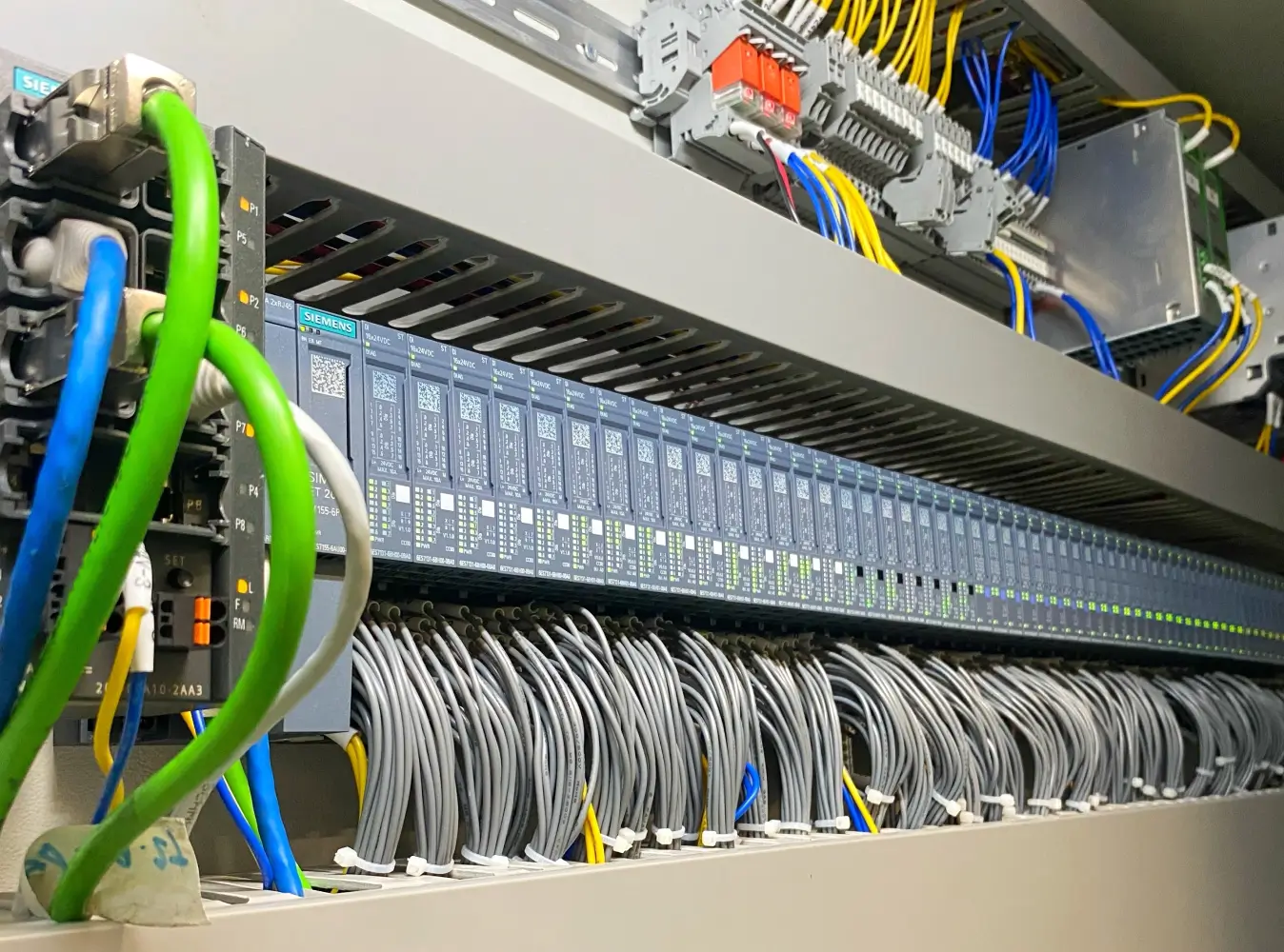 Sviluppiamo e implementiamo sistemi di automazione per linee produttive industriali attraverso la programmazione di PLC. Dopo un’analisi approfondita del sistema da automatizzare e delle esigenze del cliente, selezioniamo il PLC più adatto e scriviamo il programma in base alle specifiche tecniche del progetto, garantendo un funzionamento preciso e affidabile.
